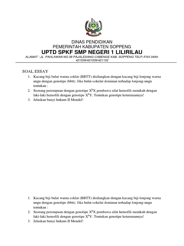 Seorang perempuan dengan genotip xhx pembawa sifat hemofili menikah dengan seorang laki laki hemofili dengan genotip xhy tentukan jumlah anak yang hidup dan anak yang mati ! Menikah dengan janda atau duda itu berbeda dengan menikah orang yang virgin. 2 essay bab pewarisan sifat pada mahluk hidup bse kurikulum 2013 semester 2 kelas 9. Kacang biji bulat warna kuning dengan genotip bbkk disilangkan dengan kacang biji lonjong warna. Apakah anda tahu jawaban yang benar?
