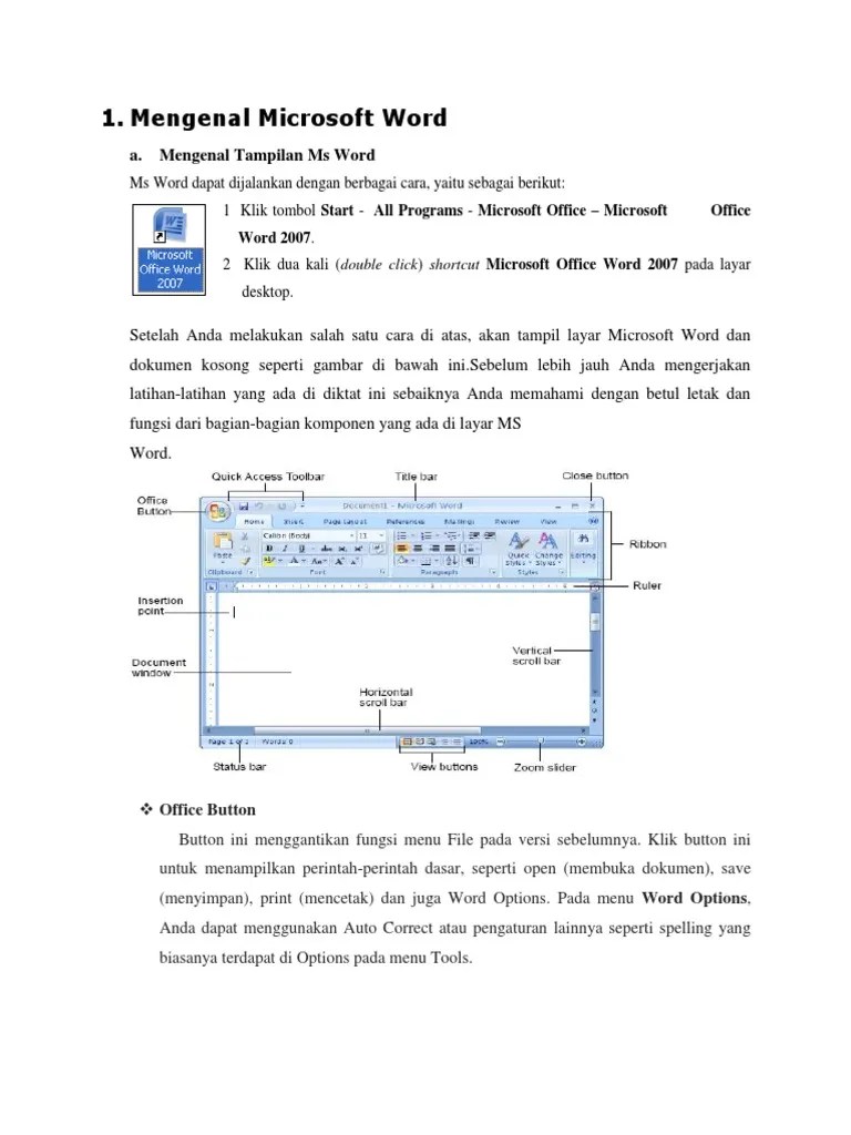 Microsoft office word (ms word) adalah program komputer pengolah kata paling populer dan paling banyak digunakan untuk membuat dokumen .